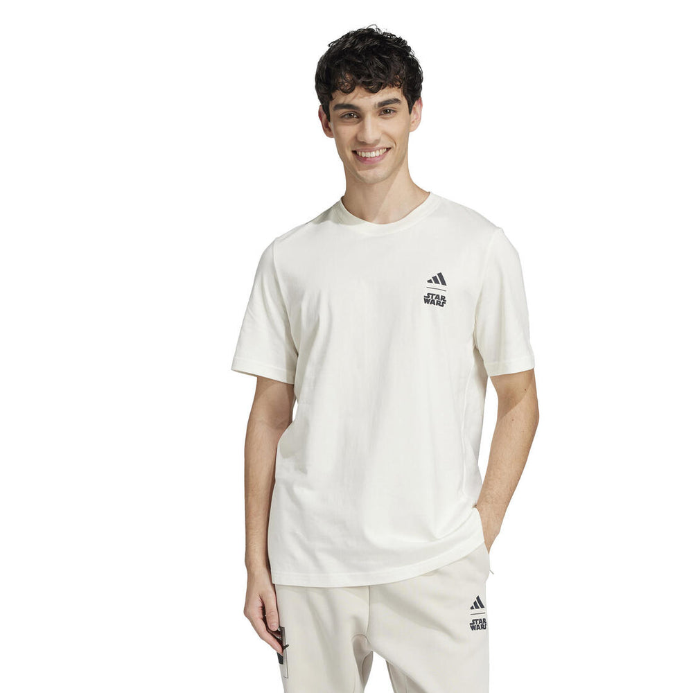Be part of the epic Star Wars story in this adidas tee. The soft, cotton blend keeps you comfortable whether you're exploring the outer reaches or kicking back at home. A graphic on the back depicts The Mandalorian and beloved character Grogu, ready for their next adventure.
